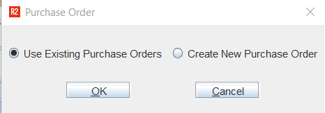 Depending on whether you want to proceed with a New or Existing Purchase Order, Select the relevant option. and click OK.