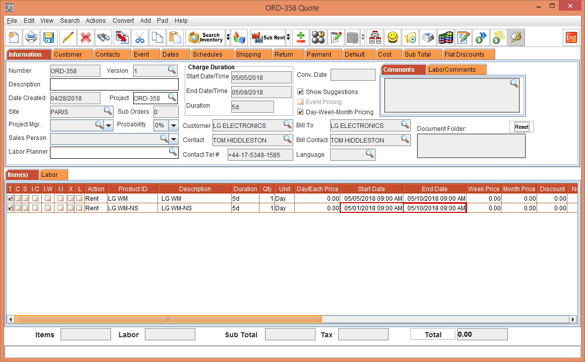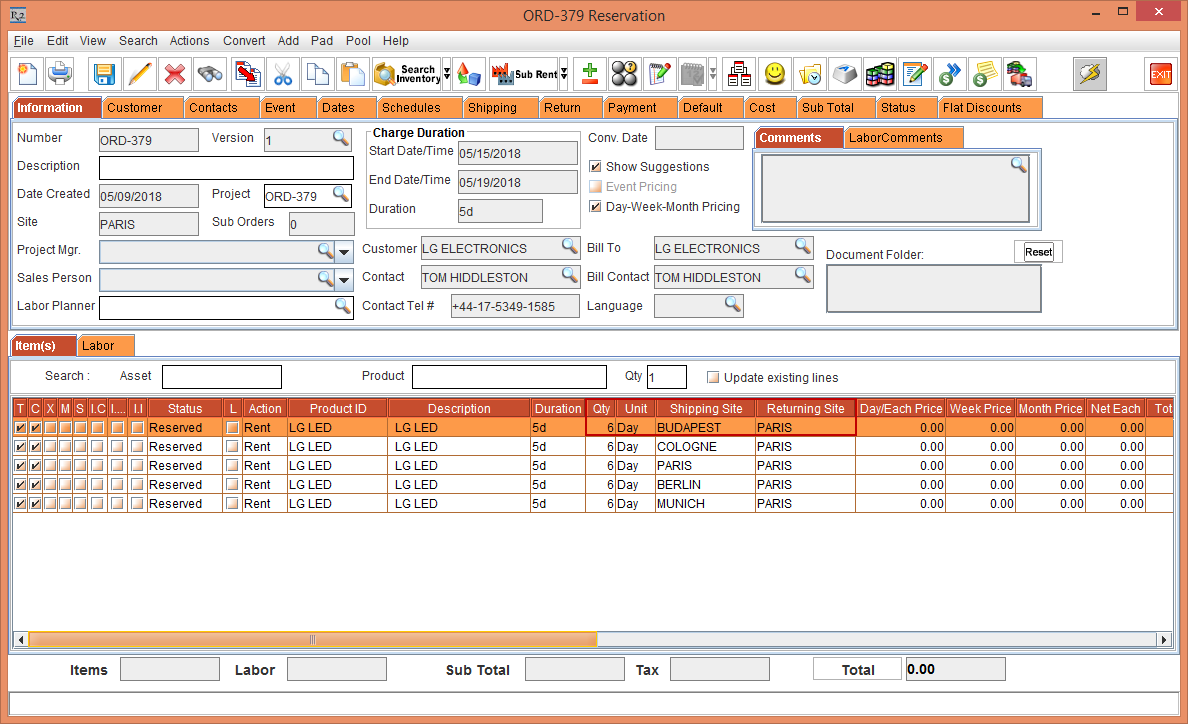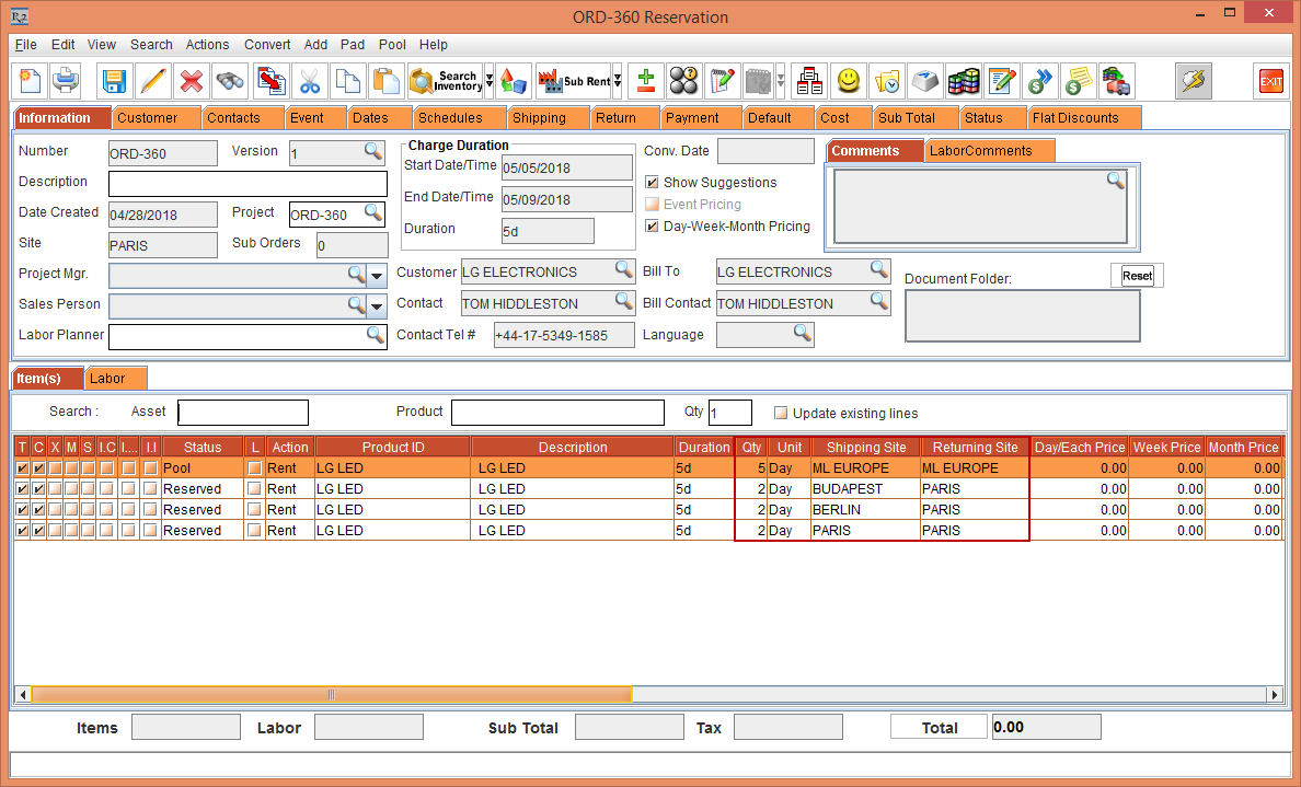 Figure 4.8 Rental Reservation Order [ORD-360] with Item [LG LED]