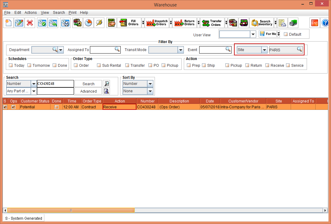 Assign operations such as Purchase, Sub-Rental, and Transfer-In can be performed for the Item lines with different Shipping Sites. The Purchase Order and Transfer Order displays the Shipping Site of the respective Item lines as the Site of Purchase Order and Transfer Order.