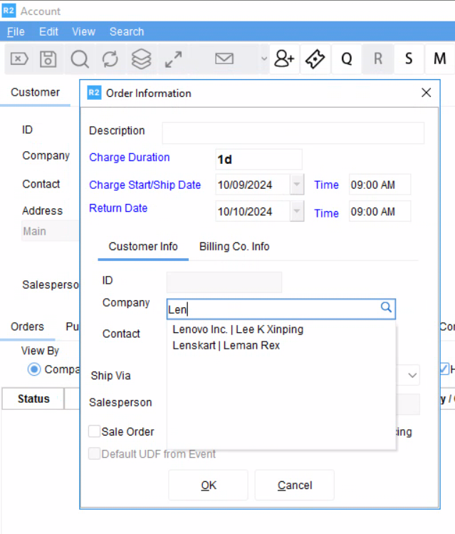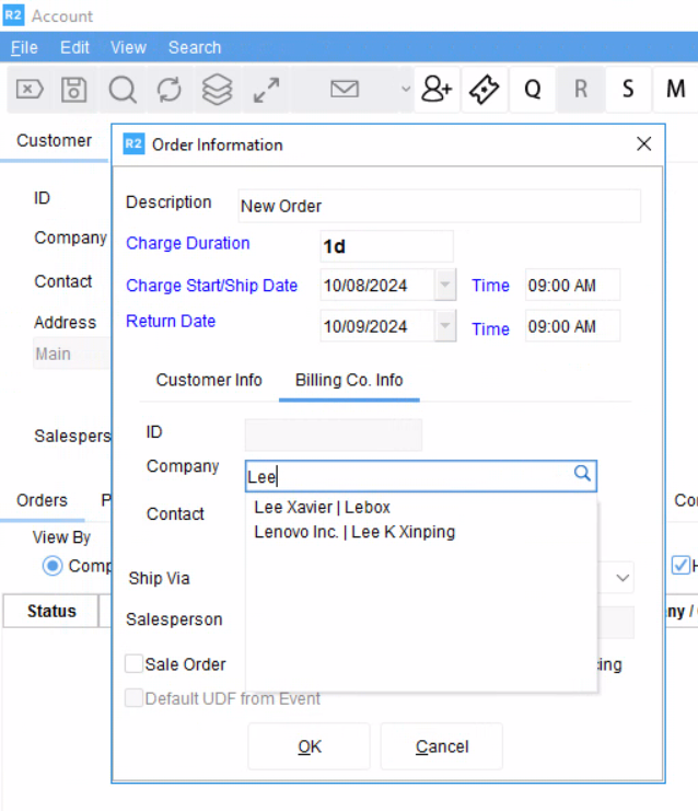 When you Navigate to Accounts > Create Order > Billing Co. Info, the list of suggestions is display the Contact name followed by their Company name(Using Separator for Company and Contact).