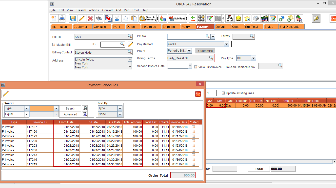 Select the Reset Billing check box in Billing Terms dialog > click the OK button > Tag the Billing Terms [ID414825]. Observe that the Order Amount is 900.