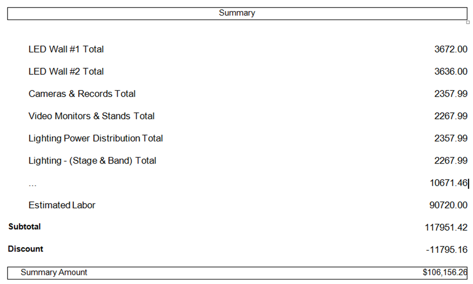 Respective Section Amounts will be printed beside the sections. These are Pre-tax and Post Discount* values.