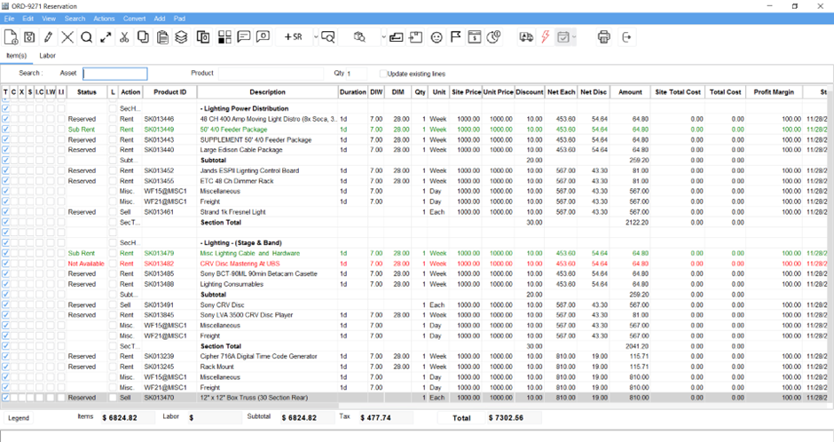 124 | Equipment: Pre-tax, Post Discount* Subtotal of Rent Items from selected Main Order and Sub-Orders. |