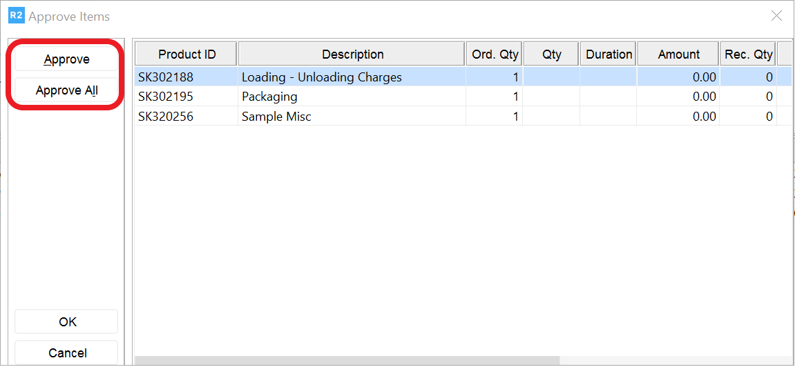 Click on the Approve or Approve All button. Items will be highlighted on blue font.