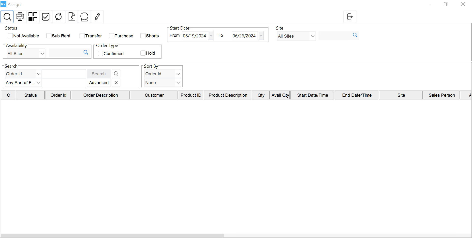 To assign a sub-rental purchase order to an item, right-click the row header of the item you wish to assign and select Assign from the pop-up menu.