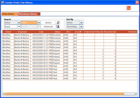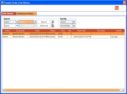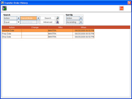 Figure 1.0: Transfer Order History window