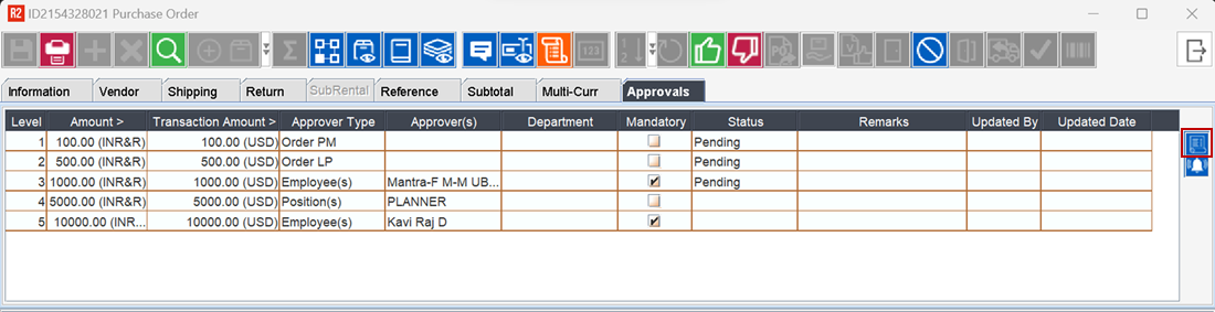 View PO Approval History Log