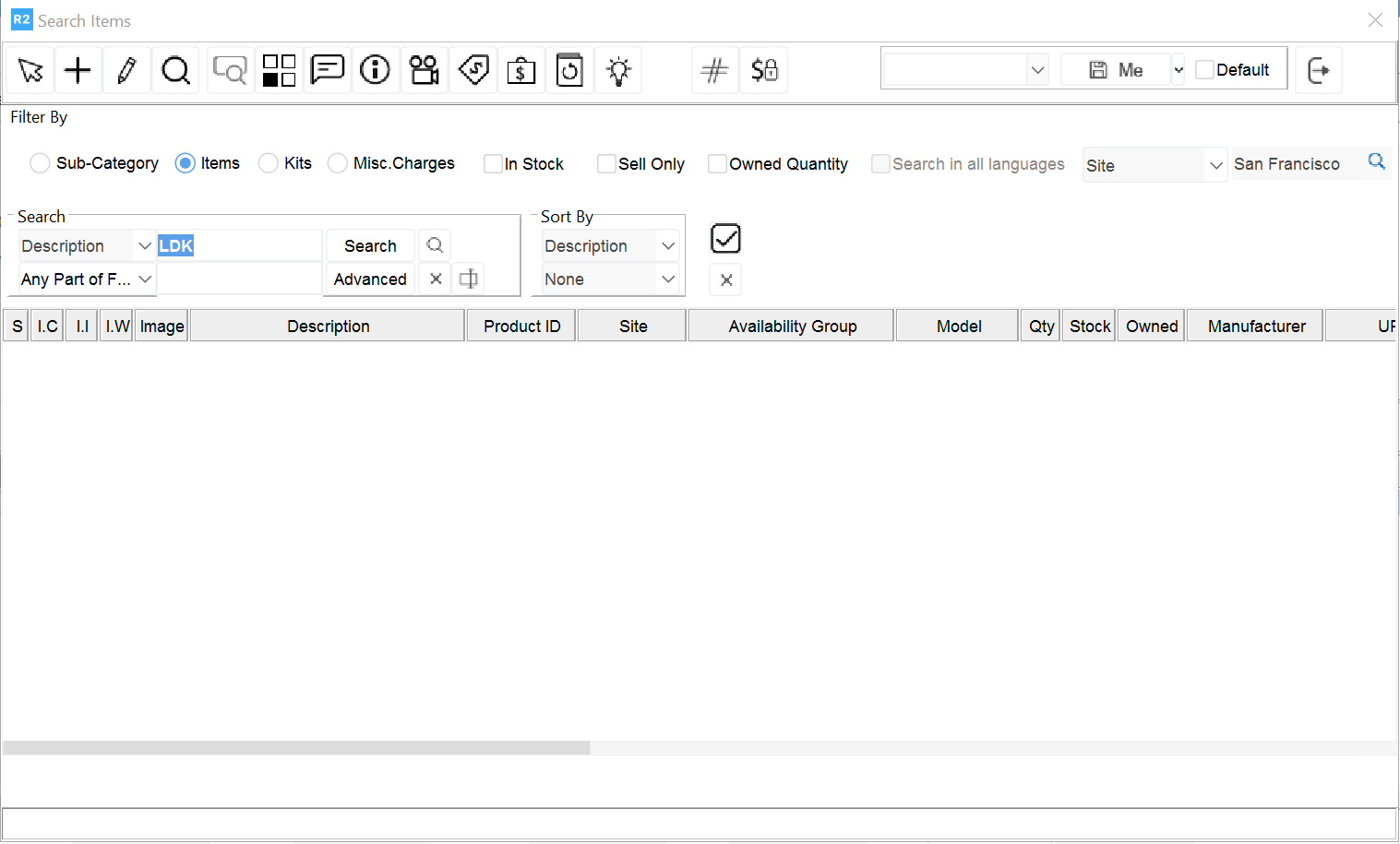 Various ways to search Inventory, Kits, Misc. Charges