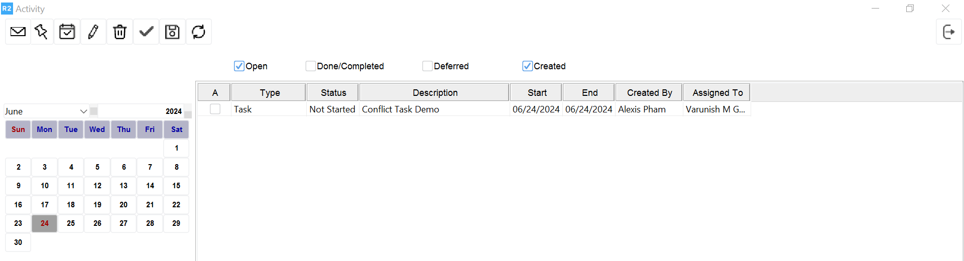 Figure 1.6 Activity Tasks created for Conflicts based on Activity Rules