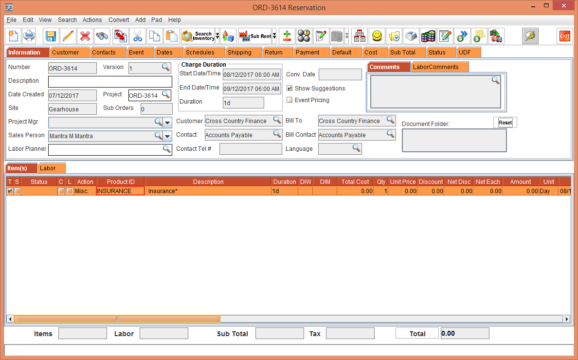 Figure 1.0 Order with Misc Charge [INSURANCE]
