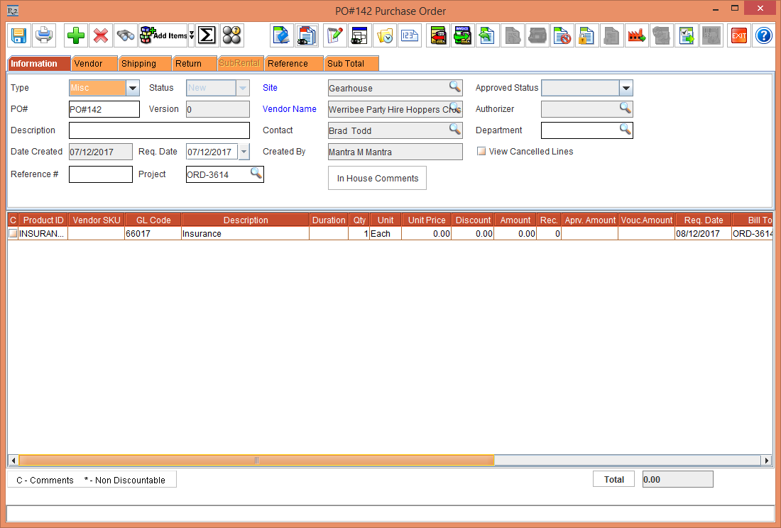 Right-click the line > select the Create Misc PO , as shown in Figure 1.1.