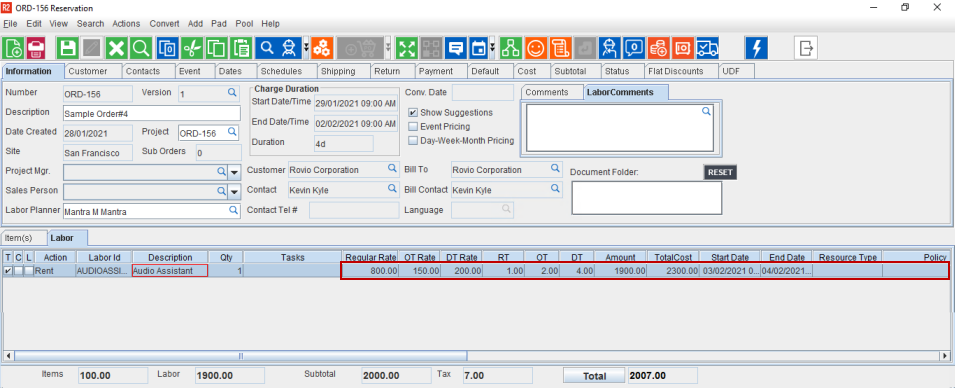 Add the created Task to the Labor line. The RT/DT/OT Hours/Rate does not get modified based on the Task and only the Dates gets changed.