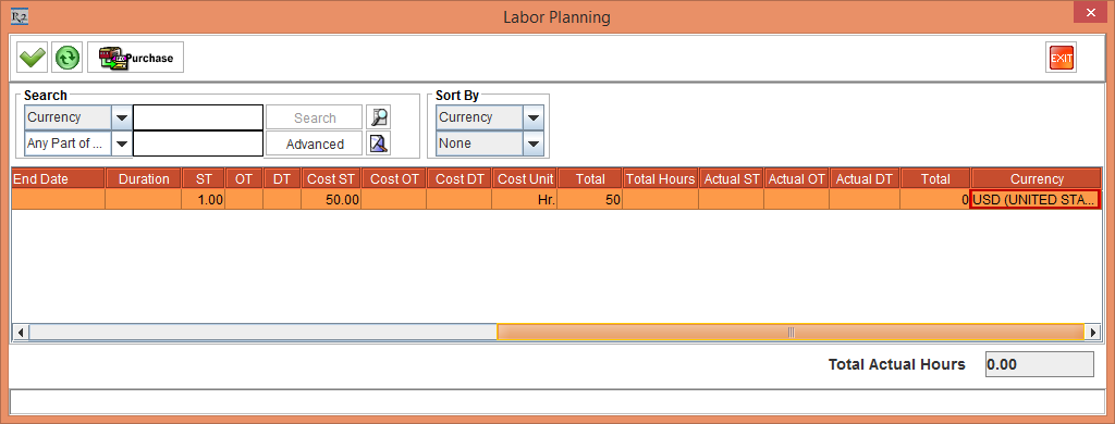 Figure 1.3 Labor Planning window with Currency column