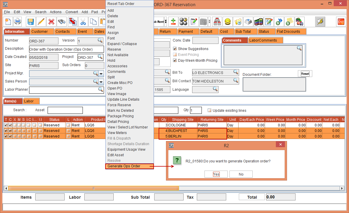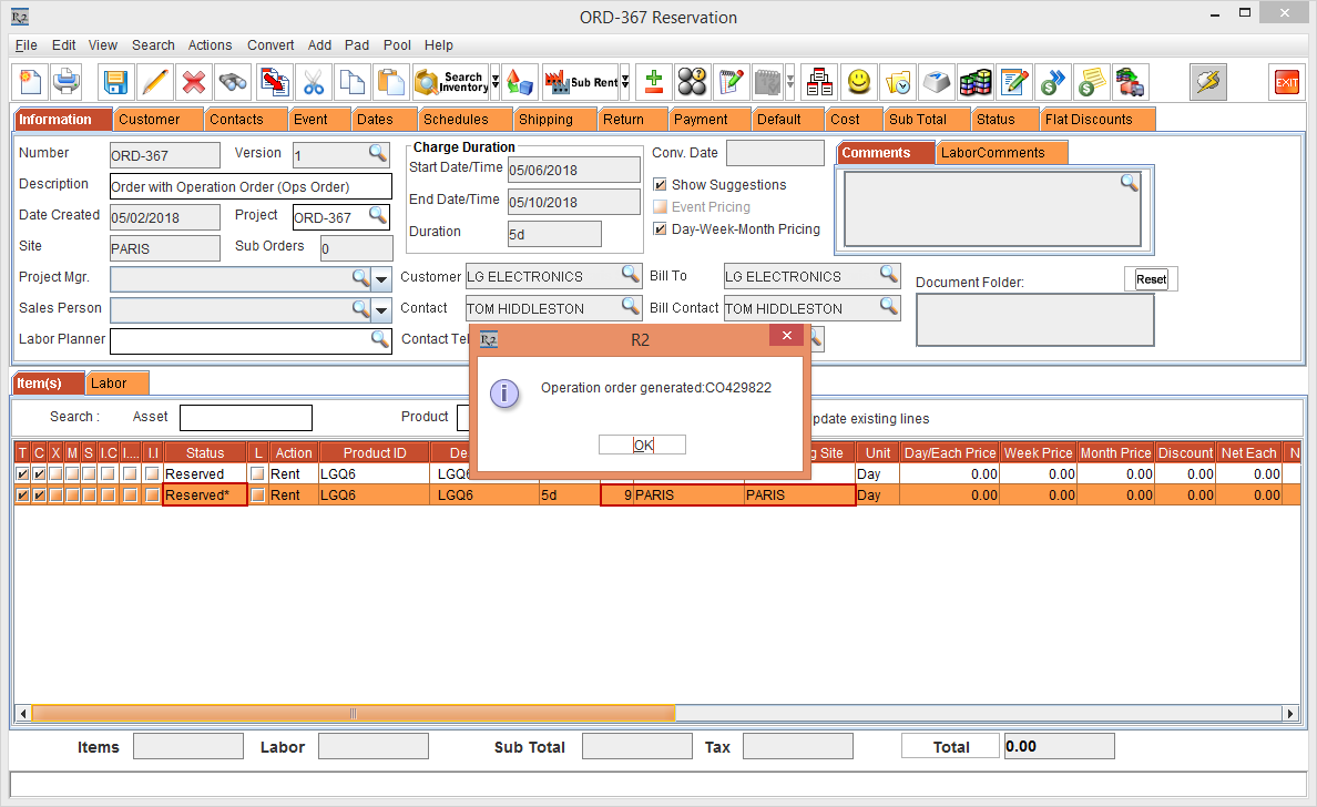 Figure 4.8 Rental Reservation Order [ORD-360] with Item [LG LED]