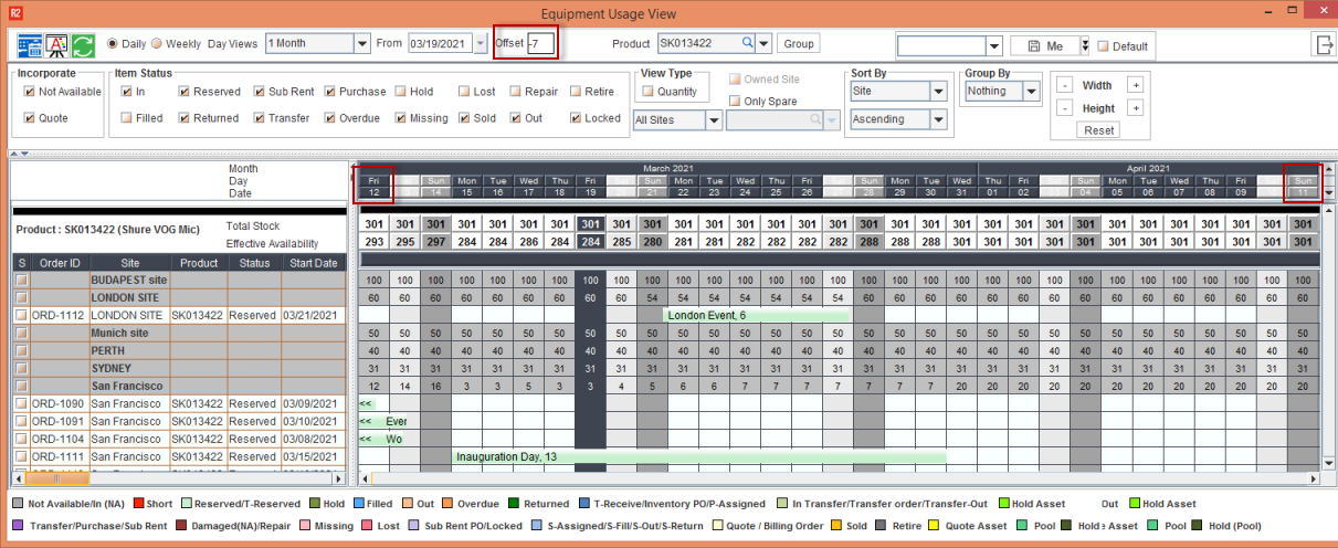 You can now apply an offset to the ‘From Date’ in EUV (Equipment Usage View), AUV (Asset Usage View), and APV (Asset Projection View) windows.