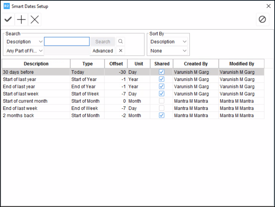 Apart from system defined smart dates, any user can create and save smart dates according to their needs. You can also share the Smart Dates created by you with others. You can personalize your search by selecting custom Smart Dates, along with system Smart Dates.