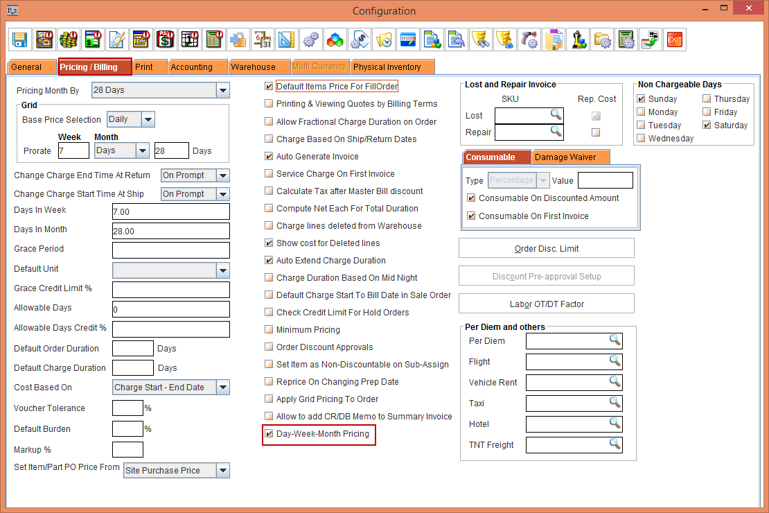 Figure 1.0 Configuration setting for enabling Day-Week-Month Pricing