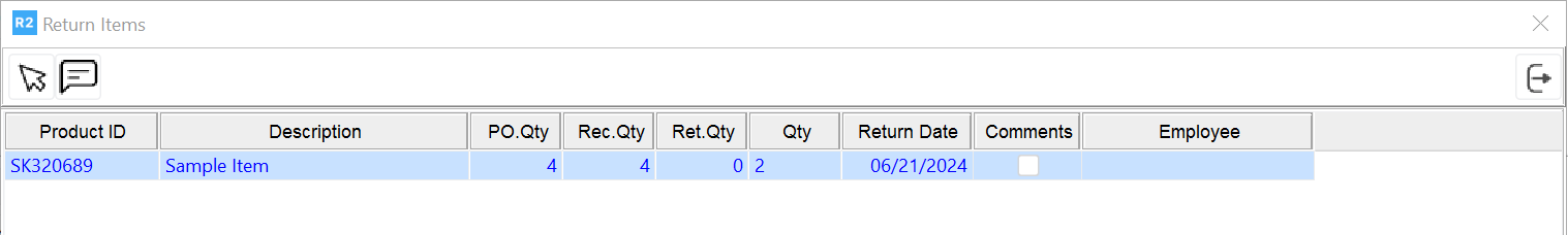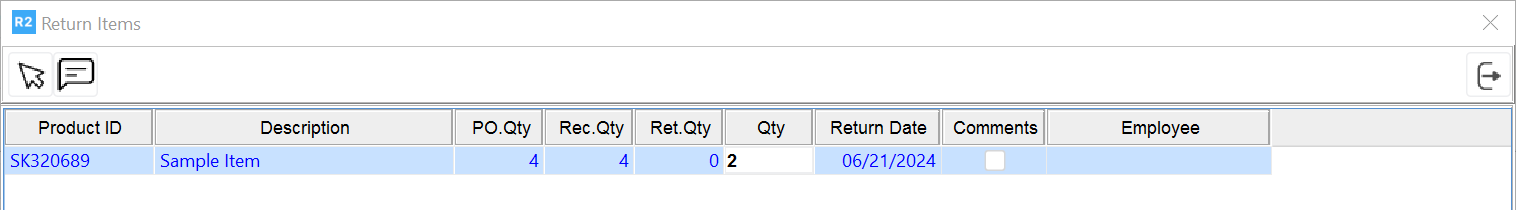 Note : The Return Qty field will display the total quantity of items that have been returned for the item.