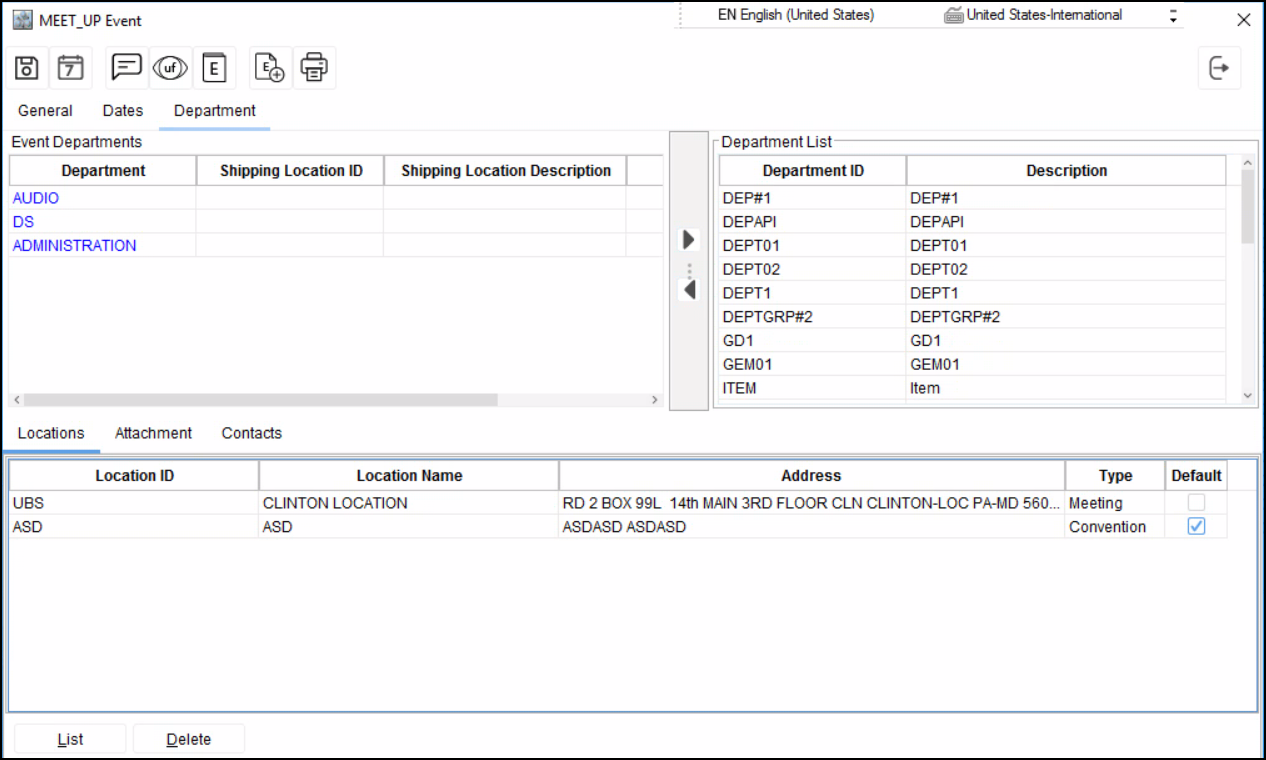 Click on the left-pointing arrow - the departments will move to the Event Departments on the left side of the screen. FIGURE2