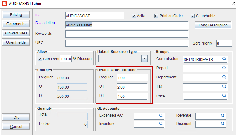 Figure 2.0: Create Labor and add the Default Order Duration hours