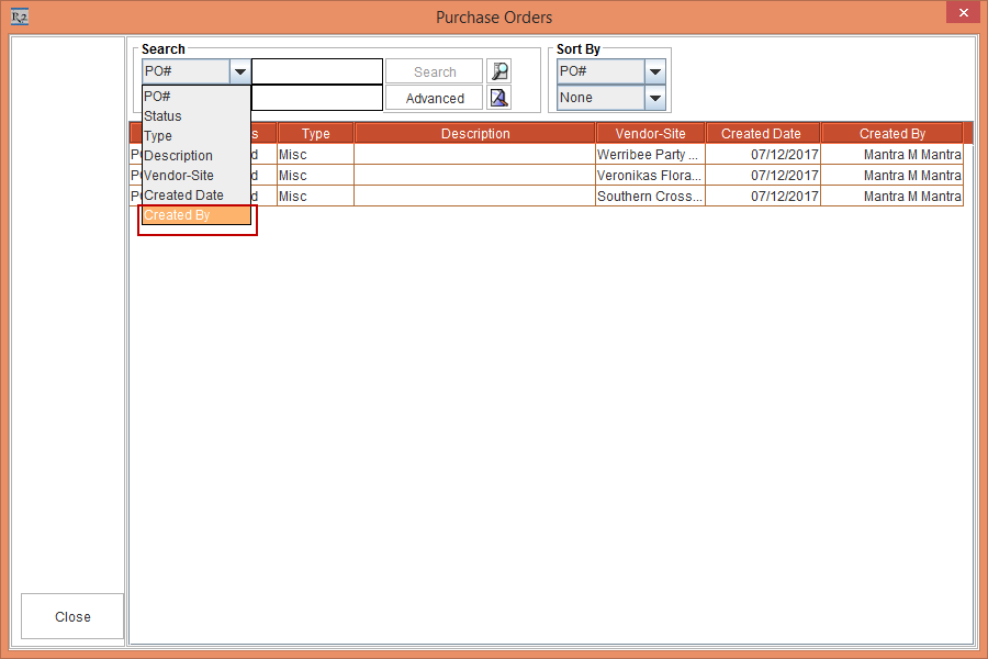 If multiple user have created Misc PO then user can search Purchase Order by using Created By search for specific Purchase Order generator, as shown in Figure 1.9.