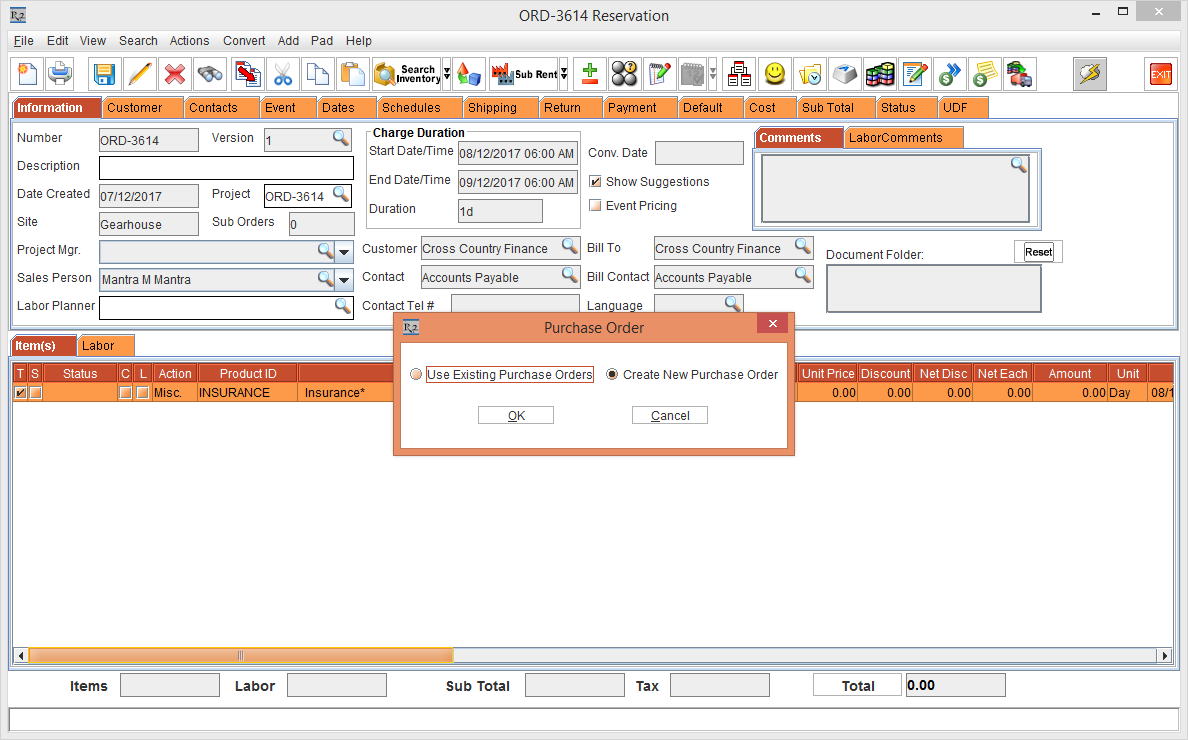 Figure 1.0 Order with Misc Charge [INSURANCE]
