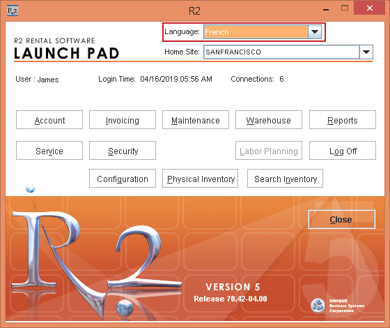 From the R2 Launchpad, select the Language drop-down as French, as shown in Figure 8.5.