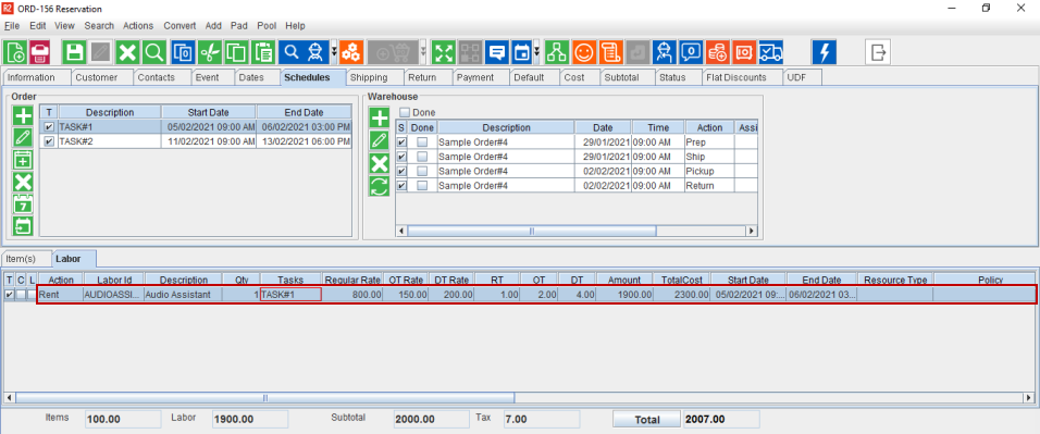 Add the created Task to the Labor line. The RT/DT/OT Hours/Rate does not get modified based on the Task and only the Dates gets changed.