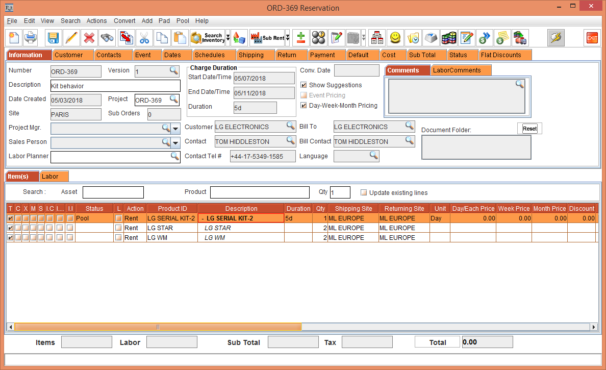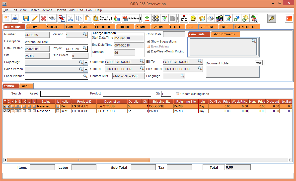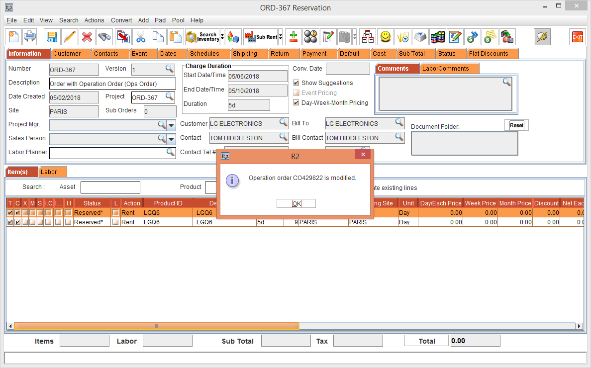 Figure 4.8 Rental Reservation Order [ORD-360] with Item [LG LED]