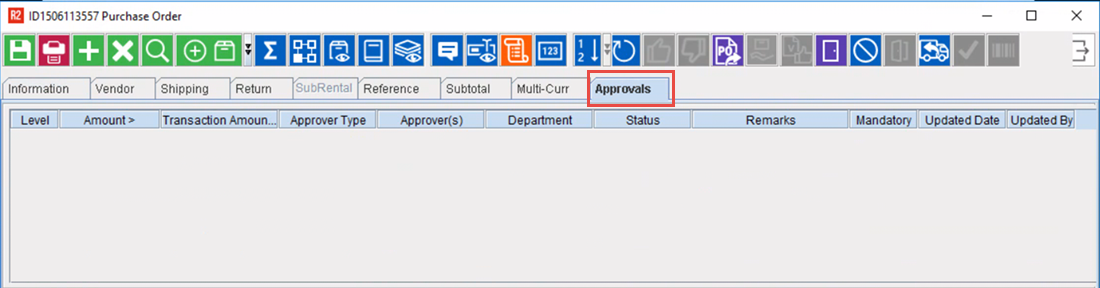 If any PO policy is found to be applicable to this PO, the Approvals tab in the PO window displays all the information about the count and levels of approvals required on the specific PO.