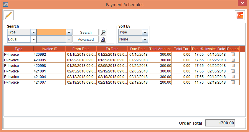Exit the Payment Schedules window and close the Order.