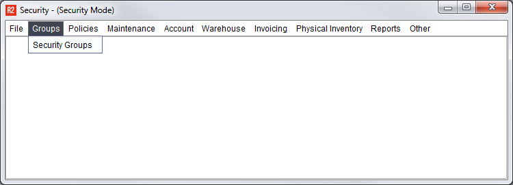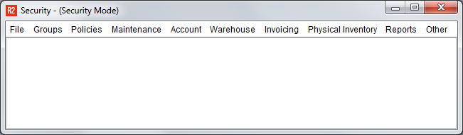 Unlike Run Time Security, System security is presented as a menu selection. A screen from R2 must be located in one of the menus and, upon selecting, will be displayed.