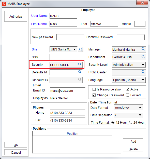 Employees who have the Security Level of Administrator are entitled to the Run Time Security feature. See the Employee Management guide for further details.