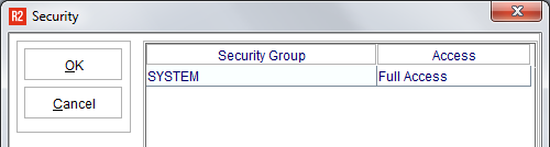 Upon running the Security Access report, R2 will ask you to select a Security Group or click on the OK button to run the report for all Security Groups: