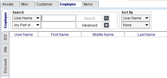 From the Maintenance module, click on the EMPLOYEE tab along the top of the search area, then click on the EMPLOYEE tab along the left side: